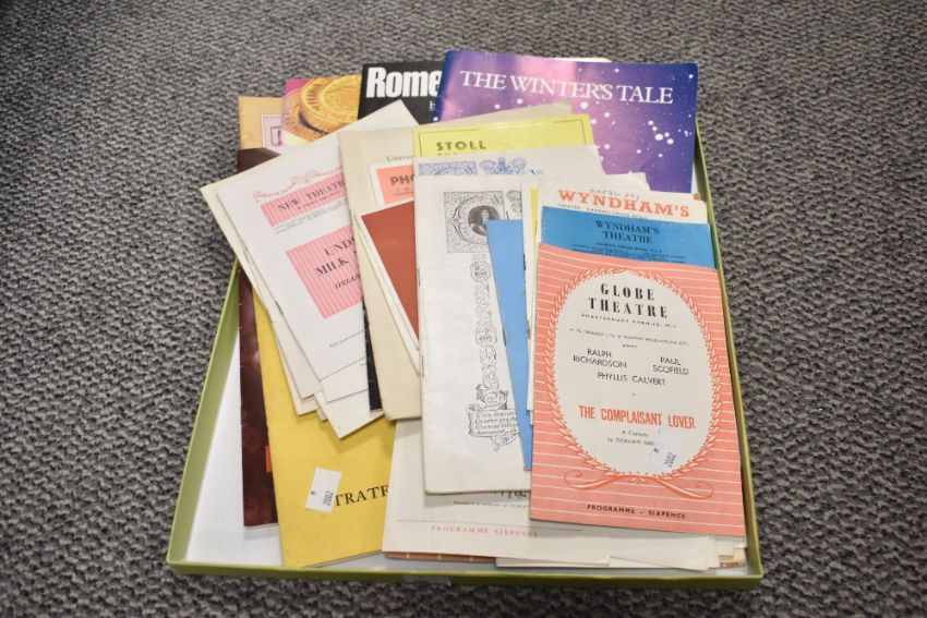 A selection of early 20th century theatre programmes, for theatres such as The Globe or The Cambridge Theatre, (small box full), condition consistent with age and use.