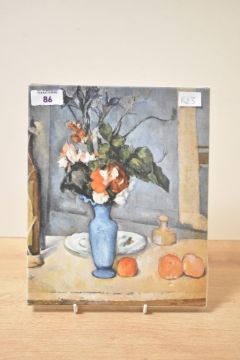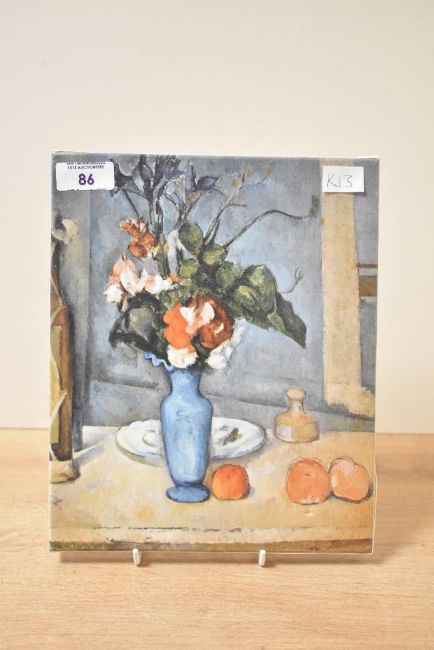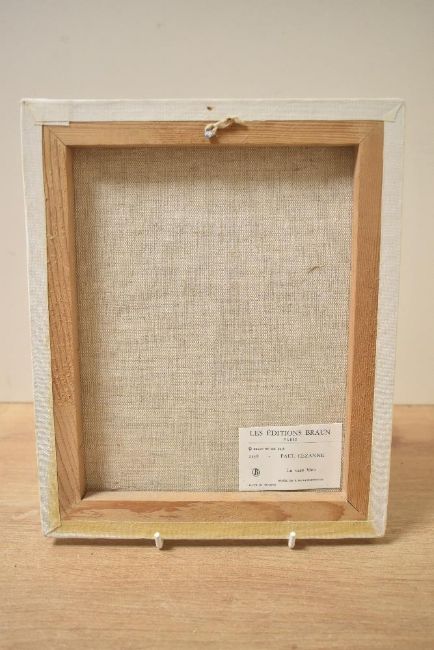 A modern Les Editions Braun of Paris print on canvas of Paul Cézannes 'La vase bleu', 20cm x 25cm, good condition.
