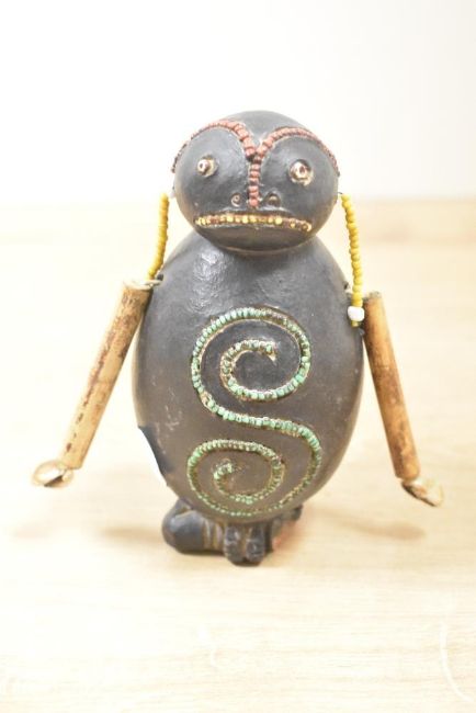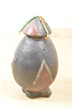 A quantity of 20th-century South African tribal pottery ceremonial dolls, featuring beaded detailing with wood and shell arms, (4), condition is consistent with age and use.