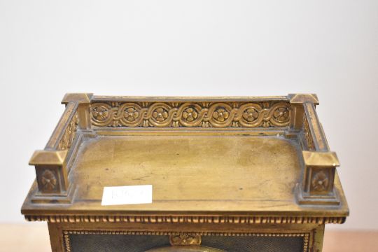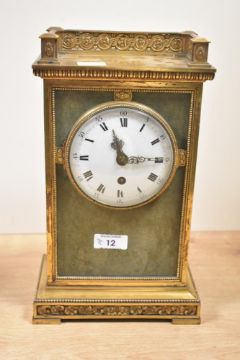 A fine late 19th / early 20th century mantel clock having drum movement with platform escapement, decorated with gilt case and shagreen panels, h31cm