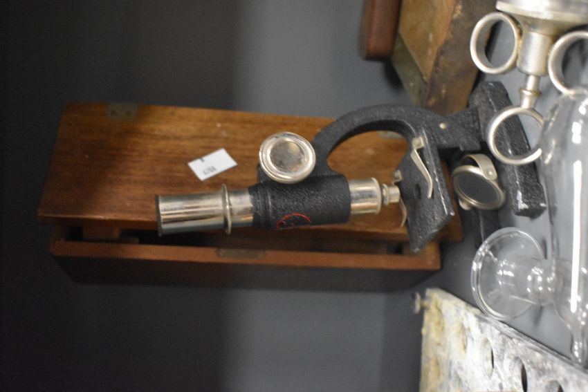 A quantity of Victorian Apothecary items, to include a large metal S.W. Son and Sons metal syringe; two stoneware vessels; a turned wood container; a glass breast pump; two pill rollers and more, some marked to base but not all, (approximately 11 pieces), condition is consistent with age and use.