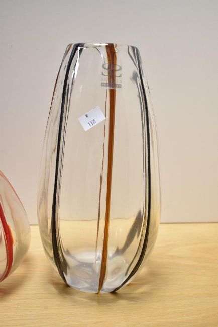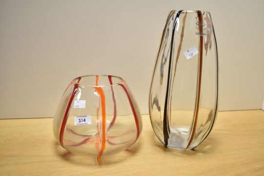 Two 20th-century Art Nouveau-style Art Studio vases, in the style of Pallme-Konig und Habel, featuring trailed glass decoration, unmarked, (2), condition is consistent with age and use, surface dust from storage but no visible chips or cracks.
