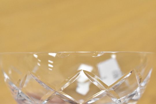 A selection of 20th-century Whitefriars Crystal coupe bowls and champagne glasses, featuring a diamond cut pattern to the shallow bowl with a short stem and circular foot, unmarked, (13 pieces), condition is consistent with age and use, one coupe bowl has visible chips to rim.