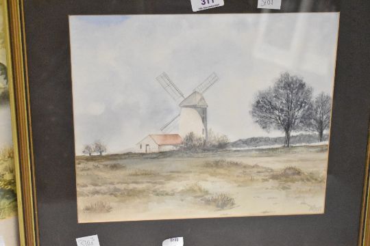 R Ball (British Contemporary) Watercolour, depicting silver birch trees beside a river, signed and dated (1986) to lower right, within card mount and moulded gilt frame, under glass 24.5cm x 31cm & 39.5cm x 45cm overall. Sold alongside two other watercolours by the same artist, both depicting windmills.