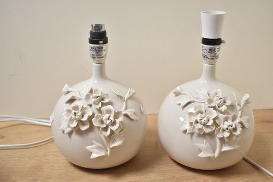 Two modern Homebase ceramic lamp bases, of rounded form with 3-dimensional flower decoration, (2), condition consistent with use.