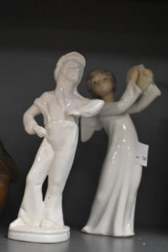 A quantity of 20th-century sundry figurines, to include a large pottery pig; a resin sitting monkey; a Spanish Nao cherub and others, some marked to base but not all, (5), condition consistent with use and storage.