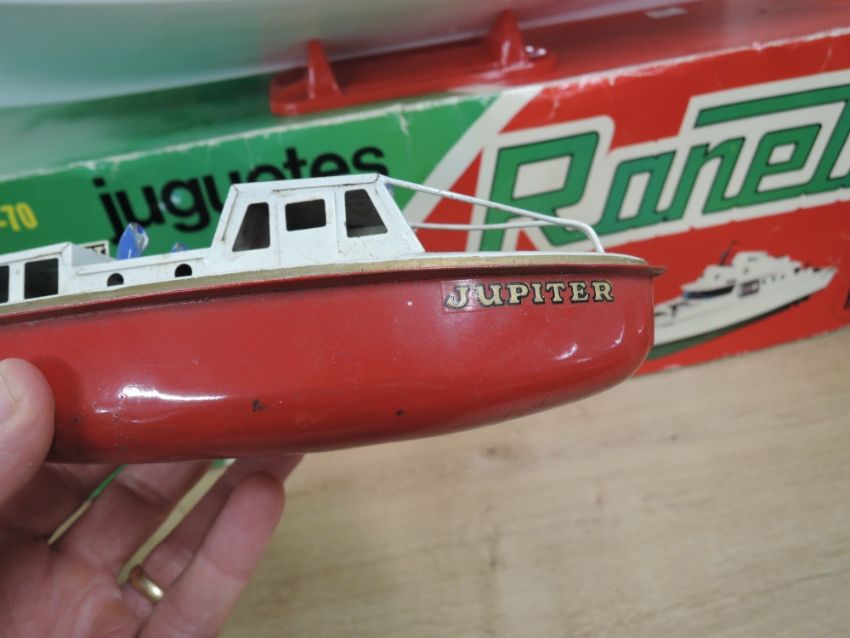 Model Boats, Ranetta plastic Yate Cristina with motor inside, battery operated in original box, box worn, Sutcliffe Model Tin Plate and Clockwork Jupitor Boat (2)