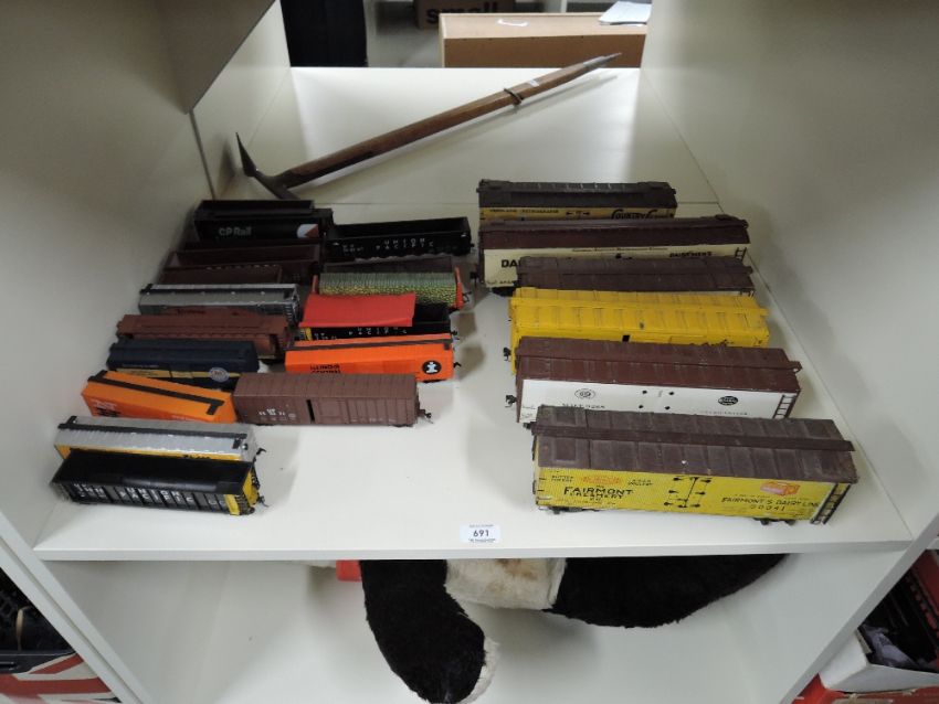 Plastic kit built HO Scale American Tankers and Wagons, (17) along with G Scale Hand Made Wagons including Dairymens Milk, MDT Refigeration, County Club etc (6) 23 items in total