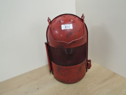 Nicoln Made in Belgium possible Railway Signal Lamp having red lenses, one restored, parafin lamp present inside, height including handle 37cm