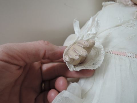 Armand Marseille Bisque Headed Doll, early 20th century having sleep blue eyes, open mouth, composition jointed body, fully clothed, all digits present, head marked AM GERMANY 351/5K, height 45cm