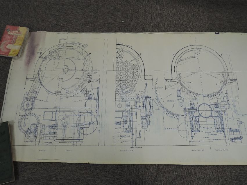 Canadian Pacific 4-6-4 Loco Section Drawings, 1, section and cab arrangement, 2, section, 3, Section End Elevation, (3) rolled