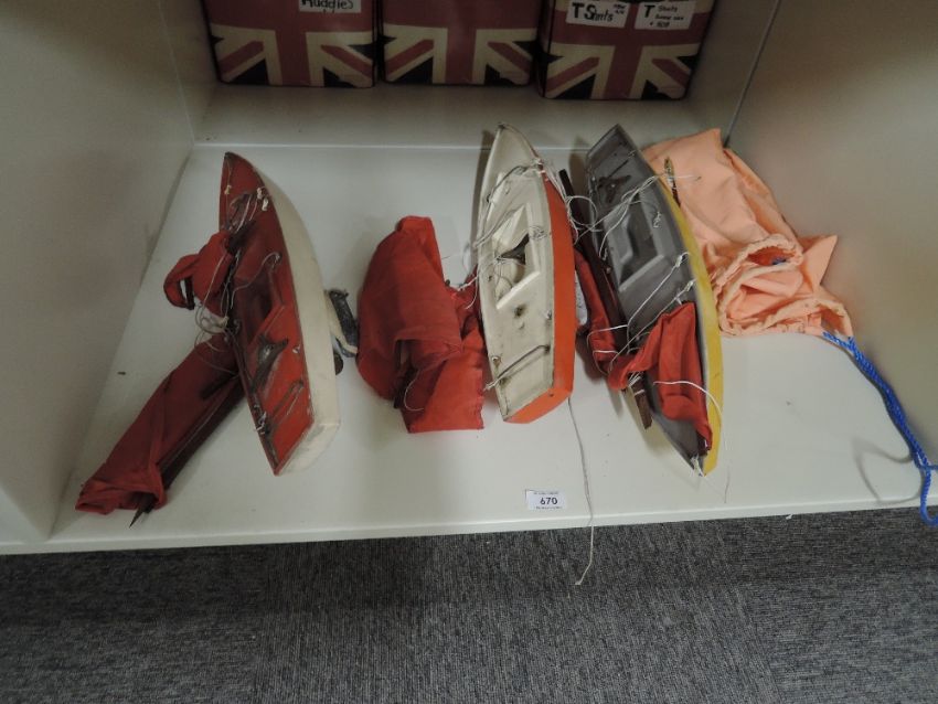Vintage Wooden and Plastic Model Racing Yachts, mostly complete but need re-rigging as per vendor note, (3)