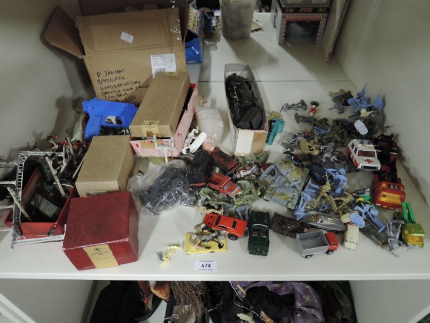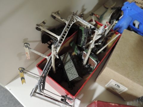 TTR Trains and Rolling Stock, Accessories etc and Military Figures, Accessories and Die-casts including Britains Machine Gun with two soldiers, many plastic figures, Matchbox and Corgi die-casts etc