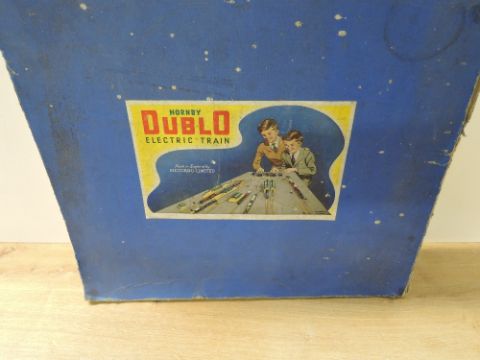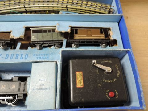 Hornby Dublo 00 Gauge, EDG7 Tank Goods Train Set comprising: LMS 0-6-0 Tank Engine with three Wagons, Track and Controller, in original worn box