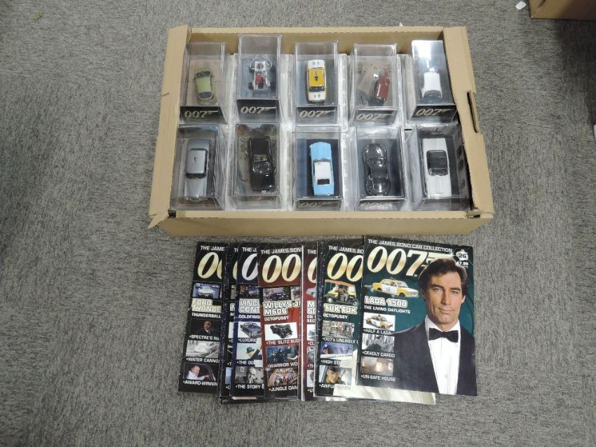 2008 G E Fabbri Ltd 007 James Bond Die-casts, Diamonds Are Forever, The Living Daylights, Octopussy etc, all in plastic display boxes with diorama, along with accompanying magazines, 20 in total, very little wear