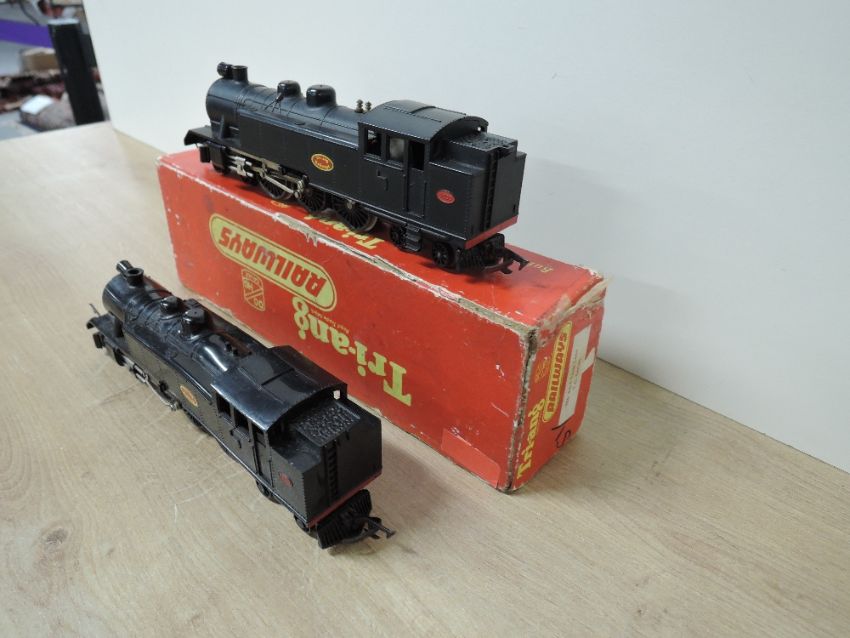 Tri-ang Railways 00 Gauge, Two R56 Continental Tank Engines Tri-ang Railways 4830 with front headlight only present, one in original box and one loose, one has very little use other used, box tired (2)