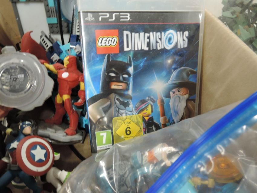 Loose Lego, Lego Dimensions including Sub Portal Base with many many figures including Wonder Woman, Tardis, Ghost Busters etc, PS3 Game, Disney Infinity 2.0 Marvel Figures also included