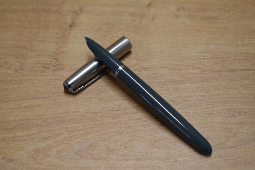 A boxed Parker 51 aerometric fill fountain pen and LL pencil set in Navy Grey with Lustraloy cap. Circa 1950