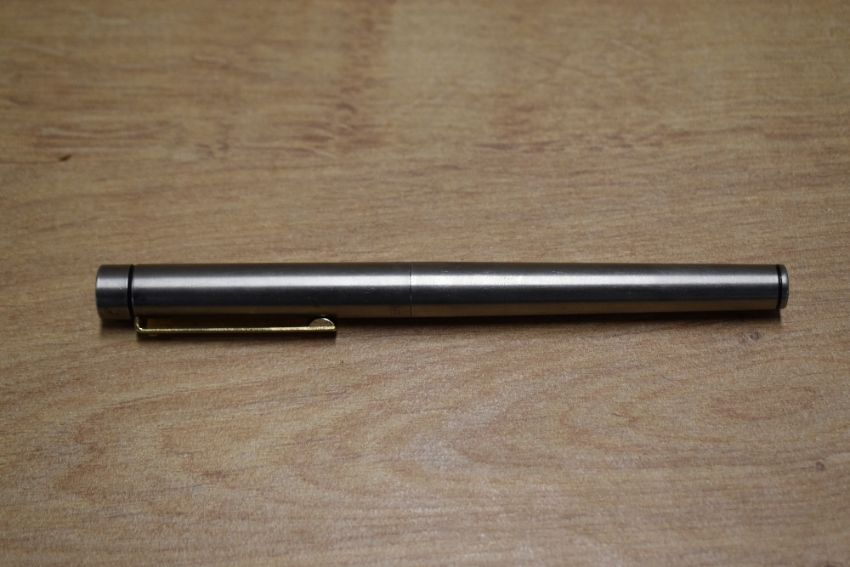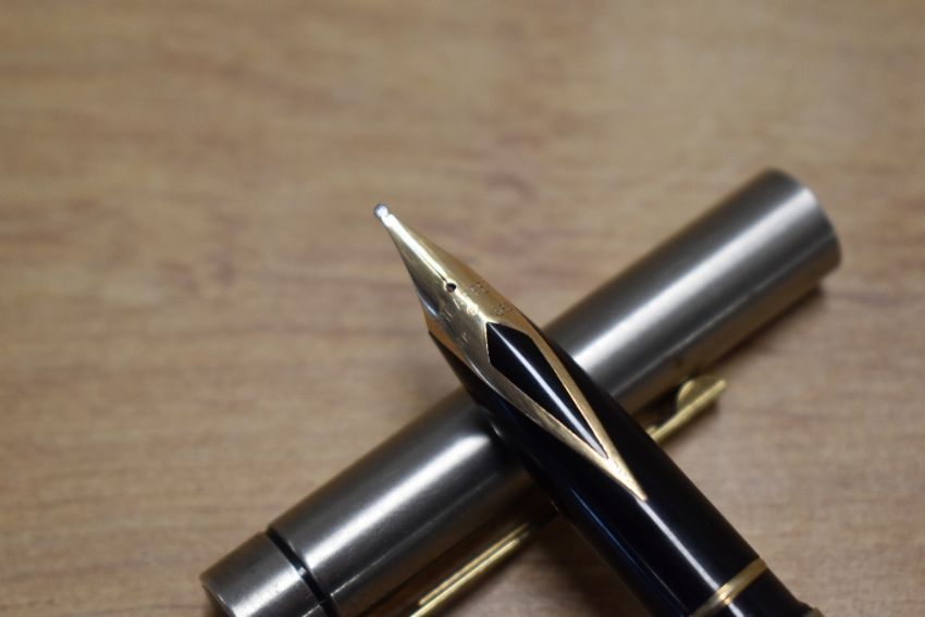 A Sheaffer Targa Cartridge Converter fountain pen in stainless steel having Sheaffer 14K 585 nib. Circa 1996
