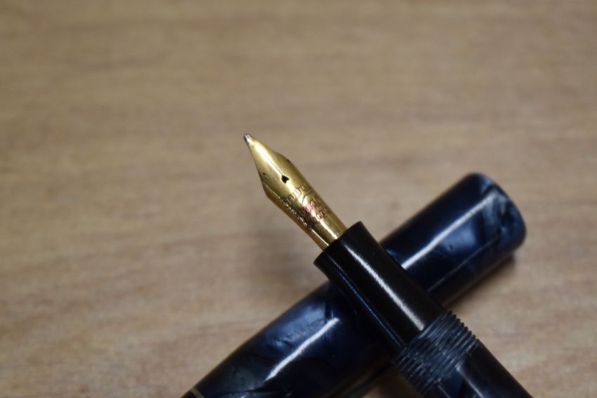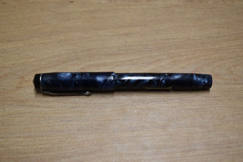 A Conway Stewart 466 Universal in Blue Pearl and Black Marble having Conway Stewart 14CT Gold nib. Circa 1937