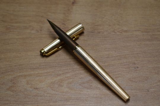 A boxed Parker Falcon Insignia converter fill fountain pen in Gold