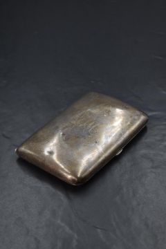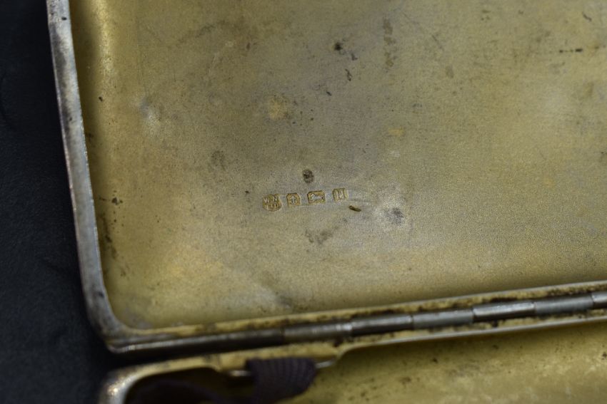 A George V silver cigar case, of hinged rectangular form, curved for the pocket with a monogram to the body, marks for Birmingham 1919, maker William Neale & Son Ltd, along with a silver mounted desk clock, marks for Sheffield 1998, maker Carr's of Sheffield Ltd, 159g for cigar case