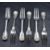 A group of six Victorian silver fiddle and shell pattern forks, having dog heraldic crests to terminals, marks for London 1847, 1848, 1852, 1859, maker Chawner & Co, 384g gross