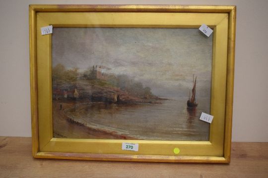 Hurne Nisbet (19th Century) Oil on board, costal maritime scene, signed and dated (1884) to lower left, within gilt slip and frame, under glass 34cm x 24cm & 43.5cm x 33.5cm overall.