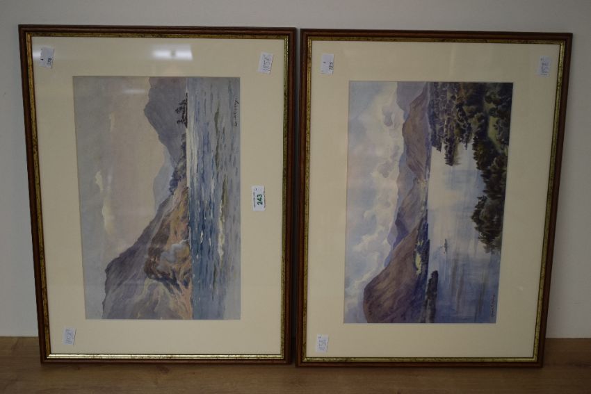 *Local Interest* Edward G Hobley (British 1866 - 1916) A pair of watercolours, the first depicting Ullswater from above with a steamer, the second a steamer seen on the lake from the water, signed to lower left and right, within card mounts and moulded frames, under glass 34.5cm x 22cm & 48.5cm x 36cm overall.