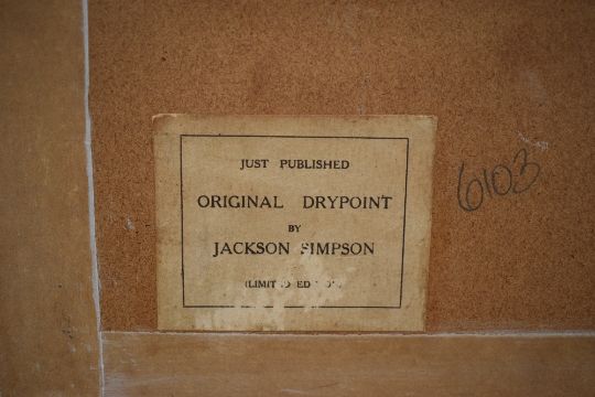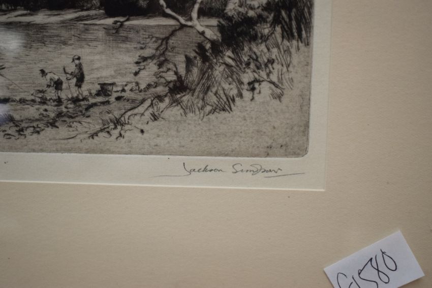 *Local Interest* Jackson Henry Simpson (British 1893 - 1963) Drypoint etching 'Windermere' depicting an iconic view of England's largest lake featuring sailing boats and the Langdale Pikes, Signed in pencil to lower right margin and entitled with blind stamp to left, attributed verso, within card mount and thin black frame 10.5cm x 24.5cm & 22cm x 36.5cm overall.
