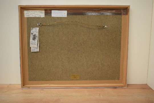 *Local Interest* Tom Mellor (British 1914 - 1994) Watercolour 'Trees by the Roadside - Provence' depicting sparse trees in a cool colour palette, signed and dated 1988 in ink lower right, titled and attributed verso alongside a newspaper clipping obituary and last sold auction location date and hammer price, within card mount and silver coloured frame, under glass 44cm x 29cm & 65cm x 49.5cm overall.