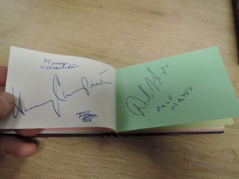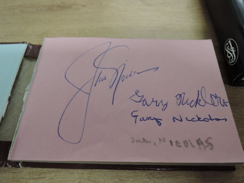 Golf Players Autograph Album, including Gary Nickolas, Seve Ballesteros, John Morgan, ED Sneed, Nick Faldo, Wayne Player, Tom Watson, Graham March, Tom Kite, Gary Player, Lee Trevino, also includes a 1979 Royal Lytham 108th Open Championship Staff Sticker,