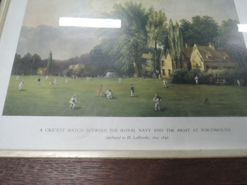Sporting Prints, Memnon Race Horse with Jockey, framed 40cm x 50cm, After H Ladbrooke A Cricket Match between The Royal Navy and The Army at Portsmouth, framed and glazed 29cm x 36cm, Messrs Fores A Match at Hambleton 1777, framed and glazed 19cm x 29cm