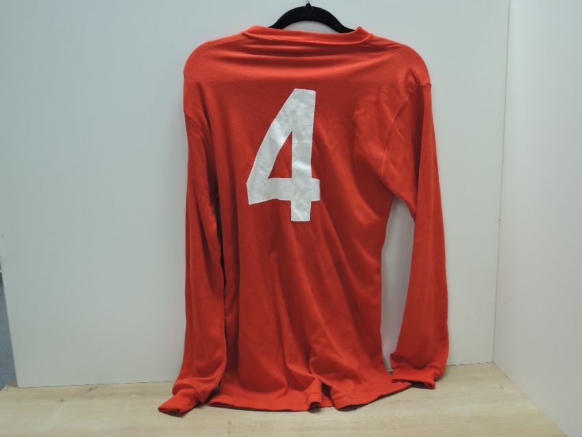 1980's Replica Umbro England Football Shirt having long sleeves in red with England Crest and Umbro badge to front, player number 4 to reverse , size Large
