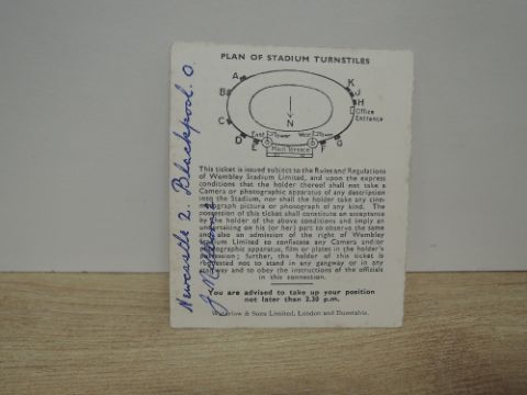 1951 FA Cup Final Ticket, 28th April, Entrance A31, South Terrace Seat, Row 26, Seat 66, Newcastle V Blackpool, teams and scorers to reverse, clean front