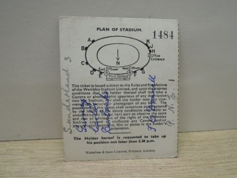 1937 FA Cup Final Ticket, 1st May, Entrance G68, West Standing Enclosure, Sunderland V Preston North End, teams and scorers to reverse, clean front