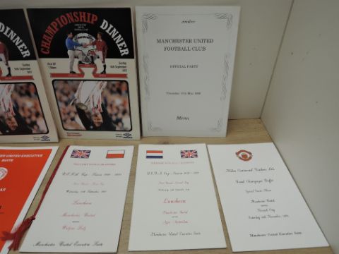 Manchester United Executive Suite Luncheon Menu's, 1976-1977 UEFA Cup V Ajax Amsterdam x 3, 1980 UEFA Cup V Widzew Lodz, 1984-1985 UEFA Cup V Videoton, 1979 Division 1 V Leeds United, V Arsenal, V Norwich City, 1980 Division 1 V Arsenal, 1978 Sportsmans Dinner, 1983 Testimonial Dinner for Martin Buchan, also a 1990 Official Party Menu, undated AC Milan V Manchester United Menu, 1999 Gala Dinner Menu, 1997 Championship Dinner Menu x 3, Executive Suite Menu Sample (18)
