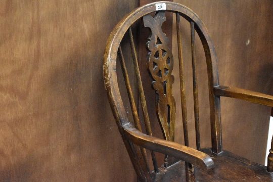 A traditional wheelback carver chair, childs size
