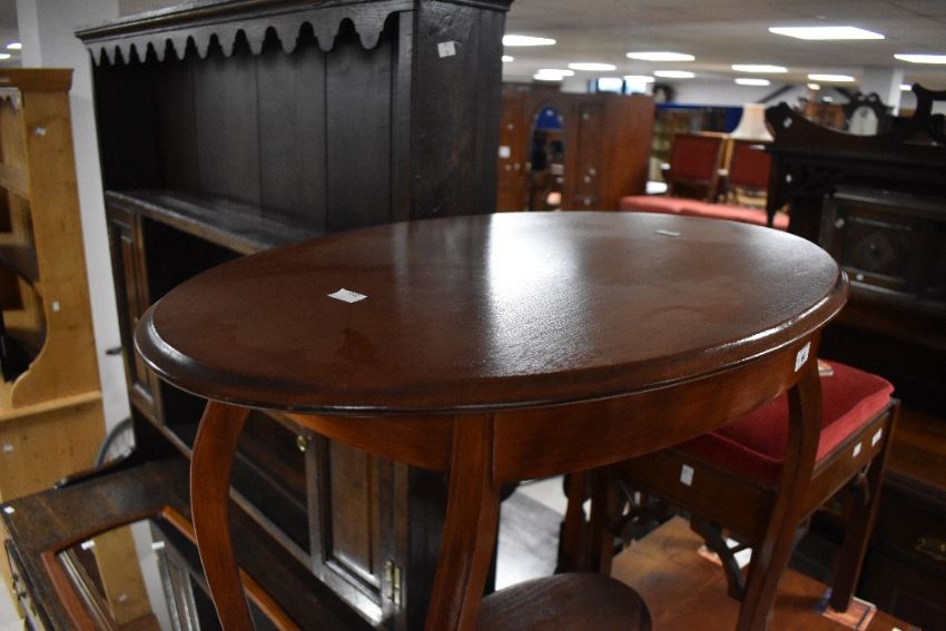 An early 20th Century mahogany occasional table having oval top and undertier, width approx. 75cm
