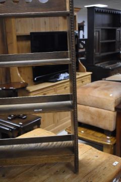 An early 20th Century oak open book shelf of small proportions, width approx. 46cm, height 91cm , depth 15.5cm
