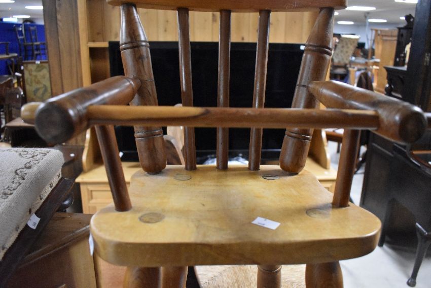 A traditional 19th Century childs high chair, plant stand and woolwork footstool