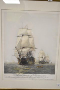 A print entitled The First Journey of Victory after W L Wyllie, engraved by H Wylie mounted framed and glazed 67cm x 57cm.