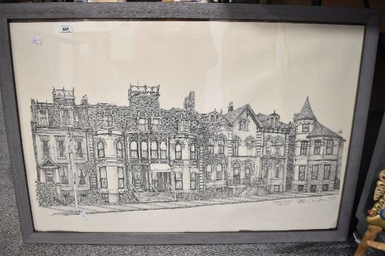A large monochrome print entitled Jarvis Street Toronto after David Crighton signed in pencil to lower right hand corner. Suffering from slight water damage. Framed and glazed 98cm x 68cm.