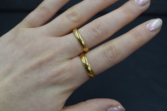 Two 22ct gold wedding bands, sizes O & Q, approx 11.8g total