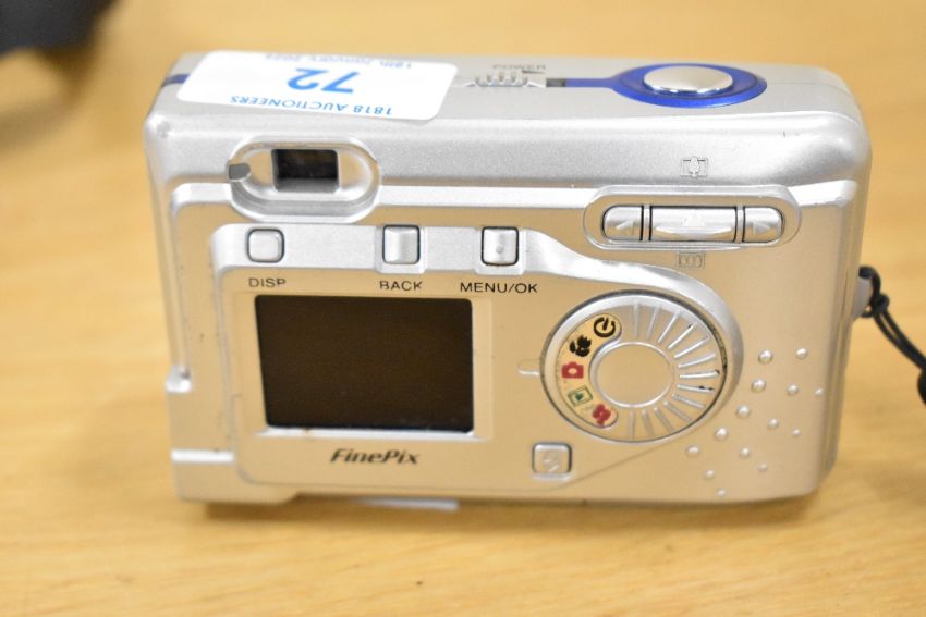 A Fujifilm Finepix A303 point and shoot digital camera, with users manual and a Lowepro carry case.