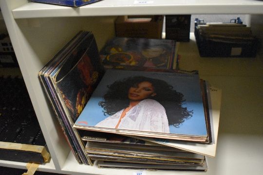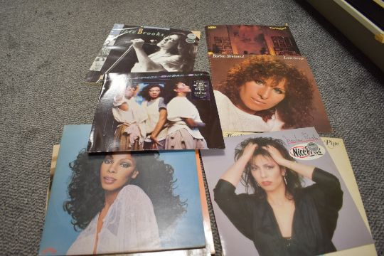 A quantity of 20th-century 12' vinyl albums; sold with a small selection of 7' singles, to include artists such as Donna Summer, ABBA, Buddy Holly, Simon and Garfunkel and more, (approximately 50), used condition.