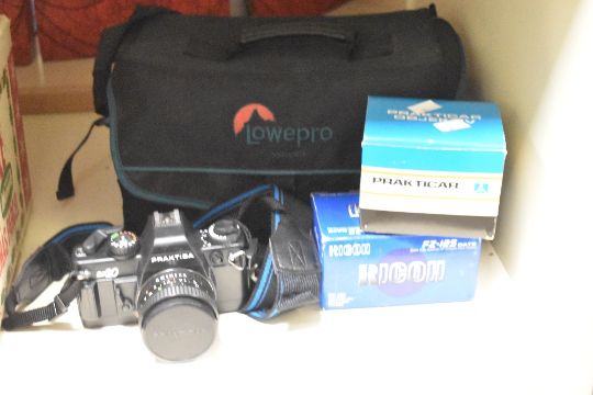 Praktica BX20 SLR 35mm film camera with Praktica 50mm f1.8 MC lens and Prakticar 35-70mm f3.5-4.8 MC Macro lens. Sold alongside a Ricoh FZ-125 35mm point and shot camera and camera bag.