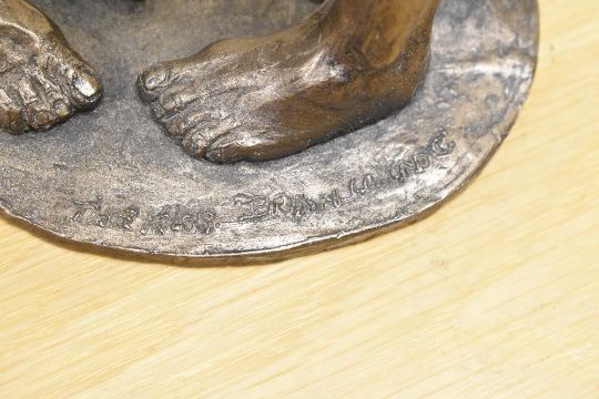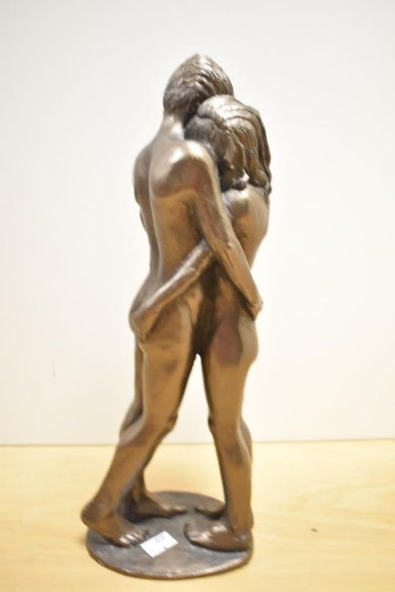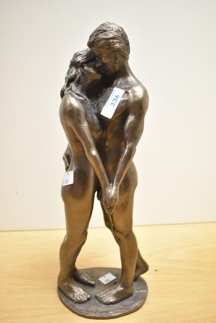 A contemporary Frith resin Sculpture 'The Kiss' by Bryan Collins, depicting a nude couple in a tender embrace, marked to base, 40cm, condition is consistent with age and use.