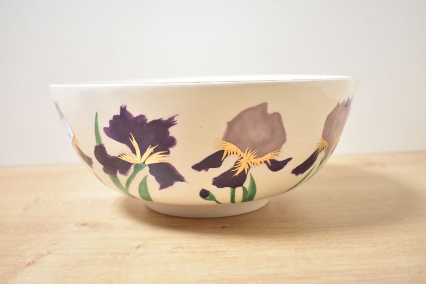 A 20th-century Masons Ironstone serving platter and bowl for the Royal Academy of Arts, designed by Dame Elizabeth Blackadder (1931–2021), having iris decoration and gilded detailing, marked to base, (2), good condition, having no visible chips or cracks, slight areas of surface wear, the bowl accompanied by its original box.