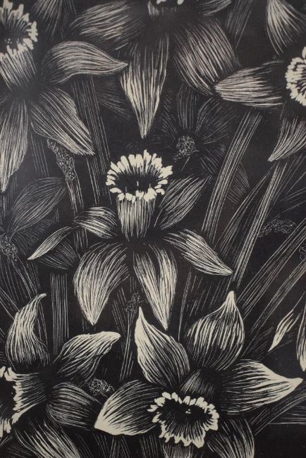 *Local Interest* After George Francis Reiss (British 1893 - 1973) Negative etching, a still life depicting a bunch of daffodils in a ceramic jug, signed and dated (1942) to lower right margin, numbered (8/53) to lower left, within card mount and thin black frame, under glass 24.5cm x 29.5cm & 36.5cm x 44.5cm overall.
